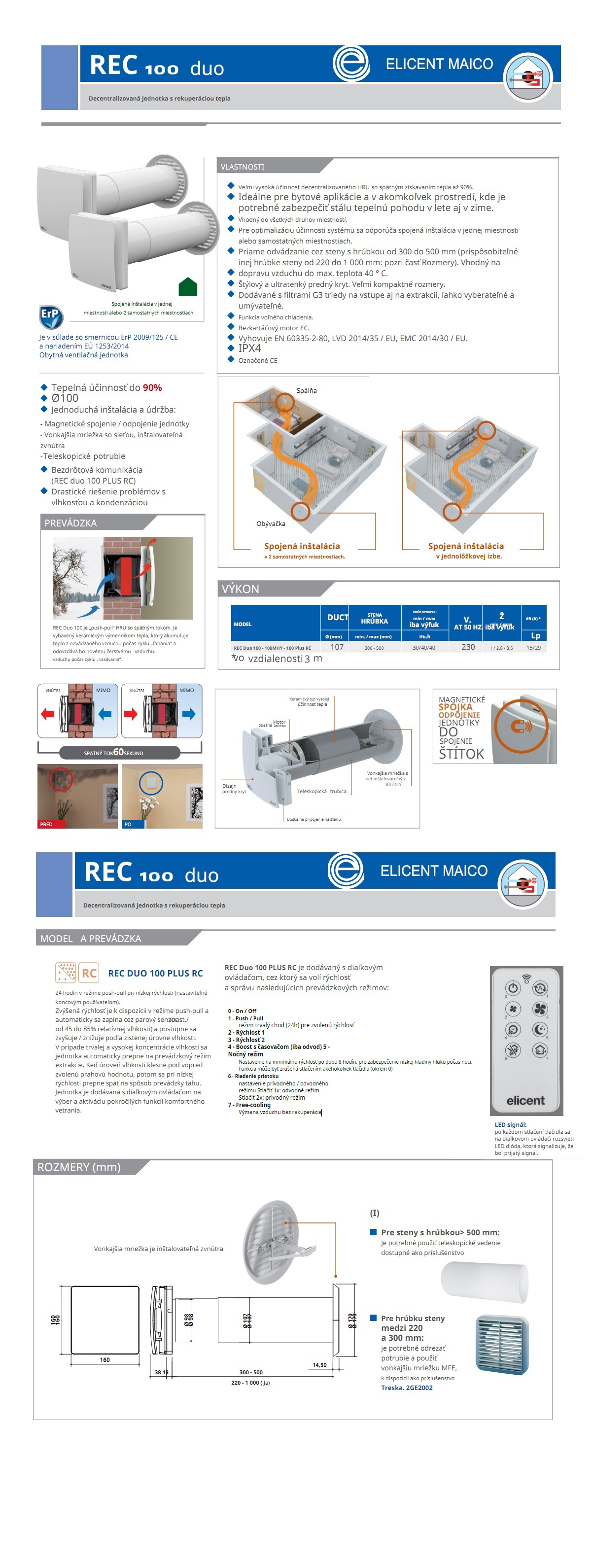 Rekuperátor decentrálny ELICENT MAICO REC DUO 100 PLUS RC-50m³/h s diaľkovým ovládačom. Výkon v rekuperačnom režime 28m³/h