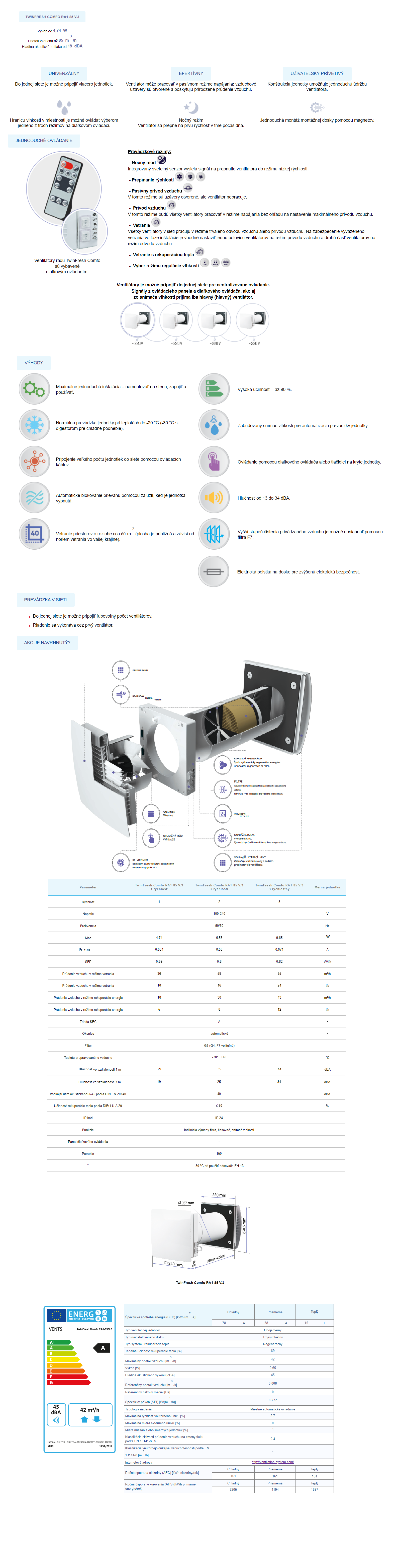VENTS TwinFresh Comfo RA1-85 V.3 Lokálny rekuperátor ∅150mm 85m3/h s automatickým uzatváraním a diaľkovým ovládačom