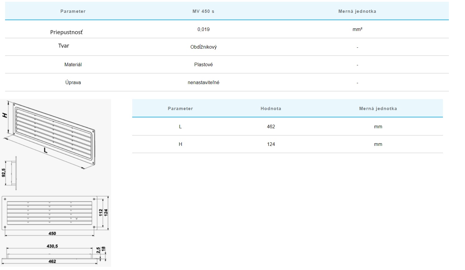 Plastová vetracia mriežka do dverí MV450S so sieťkou proti hmyzu. Vhodná na montáž do dverných krídel a parapetov. Zabezpečuje správnu cirkuláciu vzduchu.