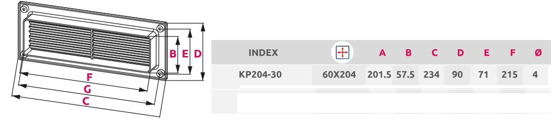 Vetracie mriežky KP204x30 plastové 60x204mm hnedé