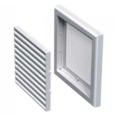 Plastová vetracia mriežka MV100S so sieťkou proti hmyzu. Krycia plocha: 154x154mm, materiál: ABS plast, odolný proti UV žiareniu. Vetracia mriežka je vyrobená z kvalitného a odolného plastu. Vnútorná časť je pripevnená k základni pomocou západiek pre ľahké čistenie bez demontáže. Upevnenie pomocou skrutiek. Mriežka má šikmé lopatky.