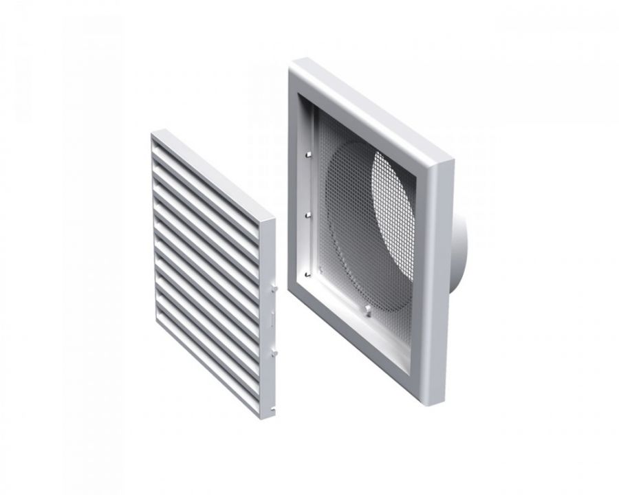 Plastová vetracia mriežka MV120VS so sieťkou proti hmyzu.Krycia plocha: 186x186mm / 125mm, materiál: odolný ABS plast. Vetracia mriežka je vyrobená z kvalitného a odolného plastu. Vnútorná časť je pripevnená k základni pomocou západiek pre ľahké čistenie bez demontáže. Upevnenie pomocou skrutiek. Vetracia mriežka má šikmé lamely.