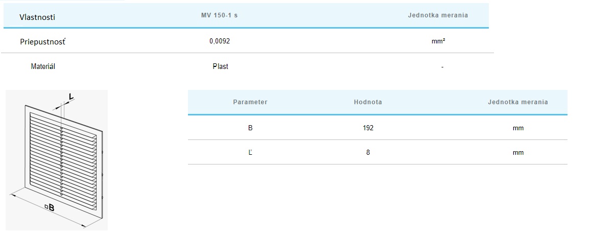 Mriežka MV150-1S plastová biela so sieťkou proti hmyzu. Krycia plocha: 192×192 mm, materiál: ABS plast, odolný proti UV žiareniu. Vetracia mriežka je vyrobená z kvalitného a odolného plastu. Vnútorná časť je pripevnená k základni pomocou západiek pre ľahké čistenie bez demontáže. Upevnenie pomocou skrutiek. Vetracia mriežka na lepenie. Mriežka MV150-1S so sieťkou proti hmyzu môže byť použitá ako náhradná vložka do mriežky MV150S.