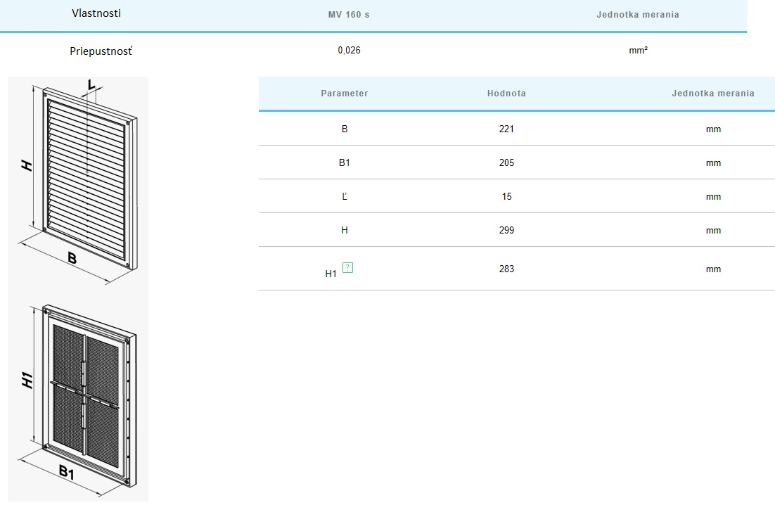 Plastová vetracia mriežka MV160S s bielou farbou a sieťkou proti hmyzu. Krycia plocha: 221×299 mm. Materiál: ABS plast, odolný proti UV žiareniu. Vetracia mriežka je vyrobená z kvalitného a odolného plastu. Vnútorná časť je pripevnená k základni pomocou západiek pre ľahké čistenie bez demontáže. Upevnenie pomocou skrutiek.