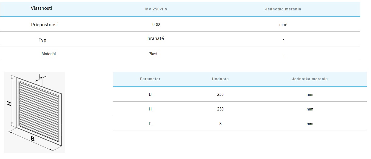Vetracia mriežka MV250-1S, plastová biela so sieťkou proti hmyzu. Krycia plocha: 230x230mm, materiál: ABS plast, odolný proti UV žiareniu. Vetracia mriežka je vyrobená z kvalitného a odolného plastu. Vnútorná časť je pripevnená k základni pomocou západiek pre ľahké čistenie bez demontáže. Upevnenie pomocou skrutiek alebo lepidlom.