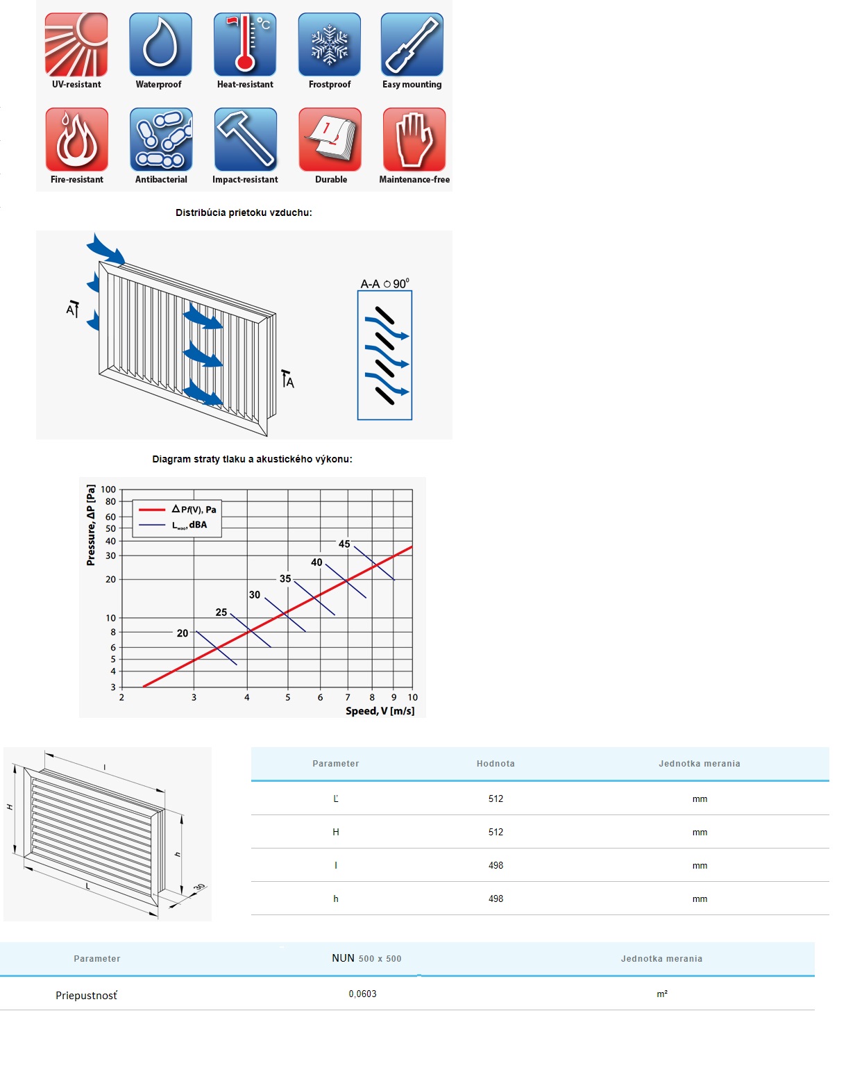 Vetracia mriežka NUN 500×500 bez sieťky, plastová biela. Krycia plocha: 512x512mm pre otvor 498x498mm, materiál: ABS plast, odolný proti UV žiareniu. Vetracia mriežka je vyrobená z kvalitného a odolného plastu. Odolná voči poveternostným vplyvom a teplotám. Odnímateľné odpružené lopatky pre jednoduchú údržbu. Jednoduchá a rýchla montáž.
