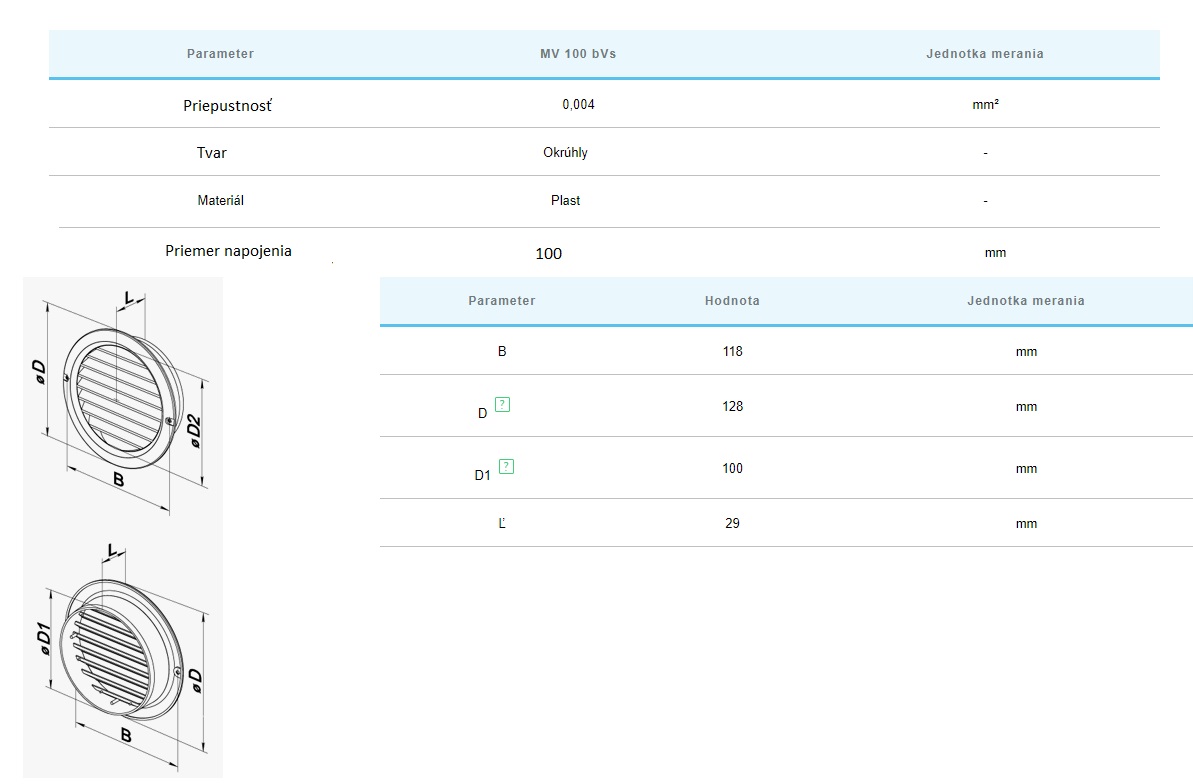 | Mriežky pre Ø mm-exterier-interier-do podhľadu | ⌀100mm-potrubie |