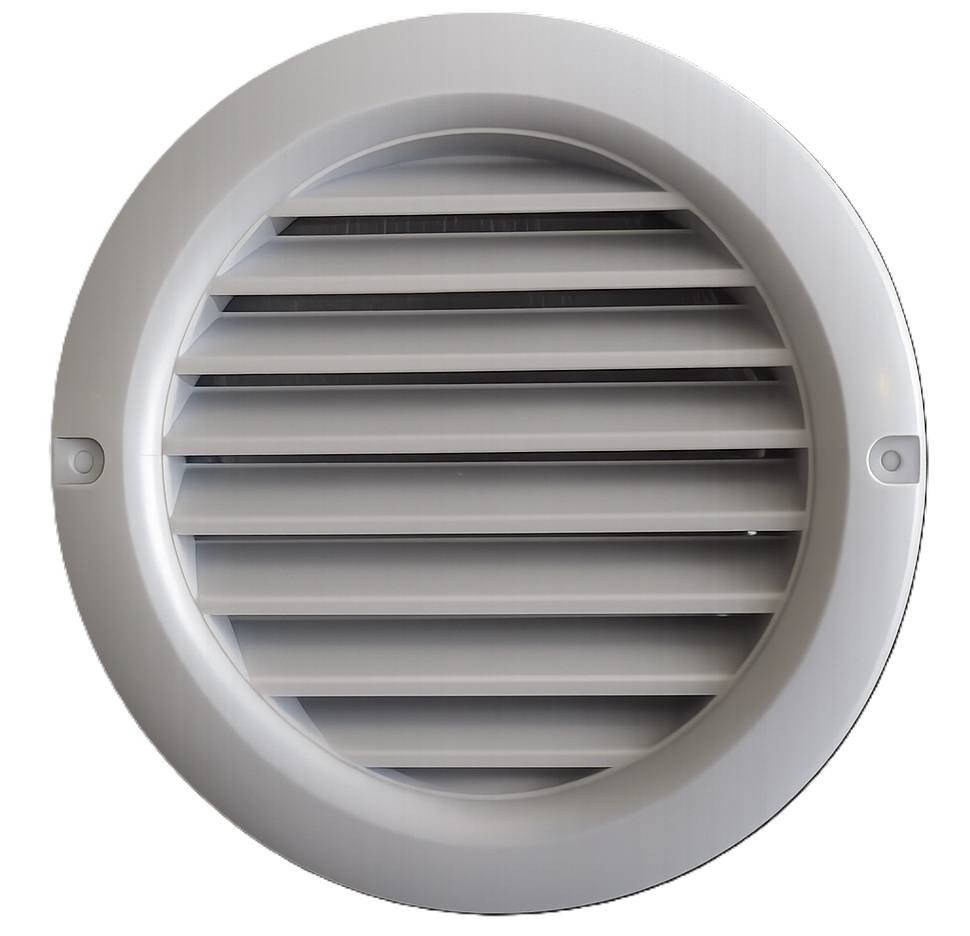Okrúhle plastové vetracie mriežky MV125 BVS so sieťkou proti hmyzu. Vnútorný rozmer: 125 mm, krycia plocha: 160 mm, farba: šedá, materiál: ABS plast. Tieto mriežky sú vhodné na inštaláciu na fasádu, na stenu do interiéru aj exteriéru. Používajú sa na zabezpečenie správnej cirkulácie vzduchu v priestoroch. Vyrobené z kvalitného a odolného plastu.