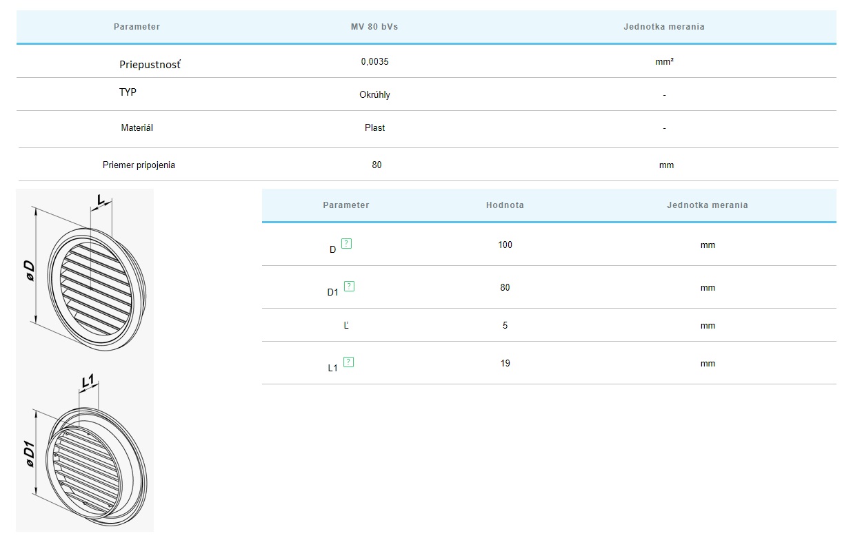 | Mriežky pre Ø mm-exterier-interier-do podhľadu | ⌀80mm-potrubie |