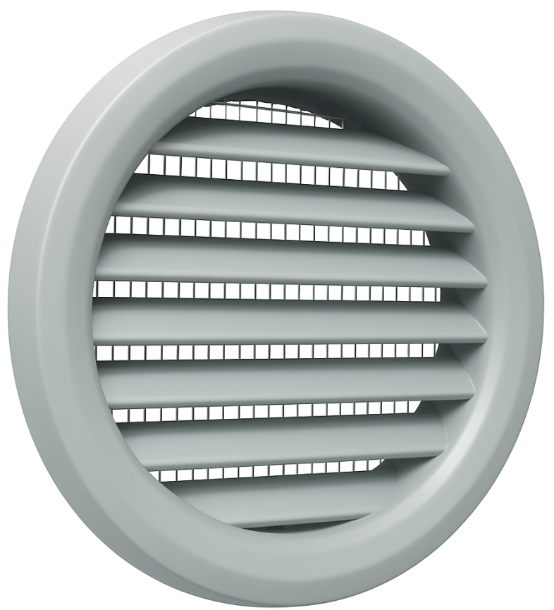Plastová vetracia mriežka s vnútorným rozmerom 80mm a krycou plochou 100mm. Farba: SIVÁ, so sieťkou proti hmyzu, vyrobená z ABS plastu.