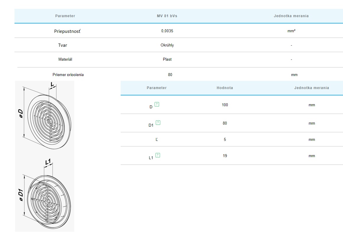 | Mriežky pre Ø mm-exterier-interier-do podhľadu | ⌀80mm-potrubie |