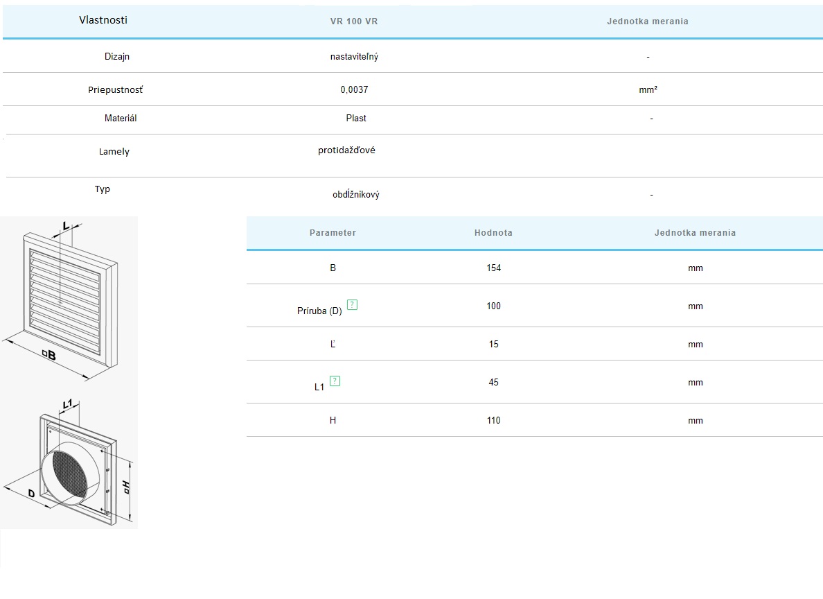 Vetracia mriežka MV150VDS s nastaviteľnou prírubou 100-150mm
