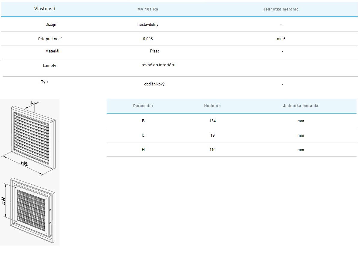 Vetracie mriežky plastové MV101RS so zatváraním krycia plocha 154x154mm sú určené do interiéru, lebo majú rovné lamely na správne rozdelenie prúdu vzduchu v priestoroch. Vetracie mriežky sú určené na montáž na stenu alebo na strop. Vyrobené sú z kvalitného a odolného plastu. Viac prvková štruktúra. Vnútorná časť je pripevnená k rámčeku pomocou západiek pre ľahké čistenie bez demontáže. Upevnenie pomocou skrutiek. Zatvárajú sa lankami.