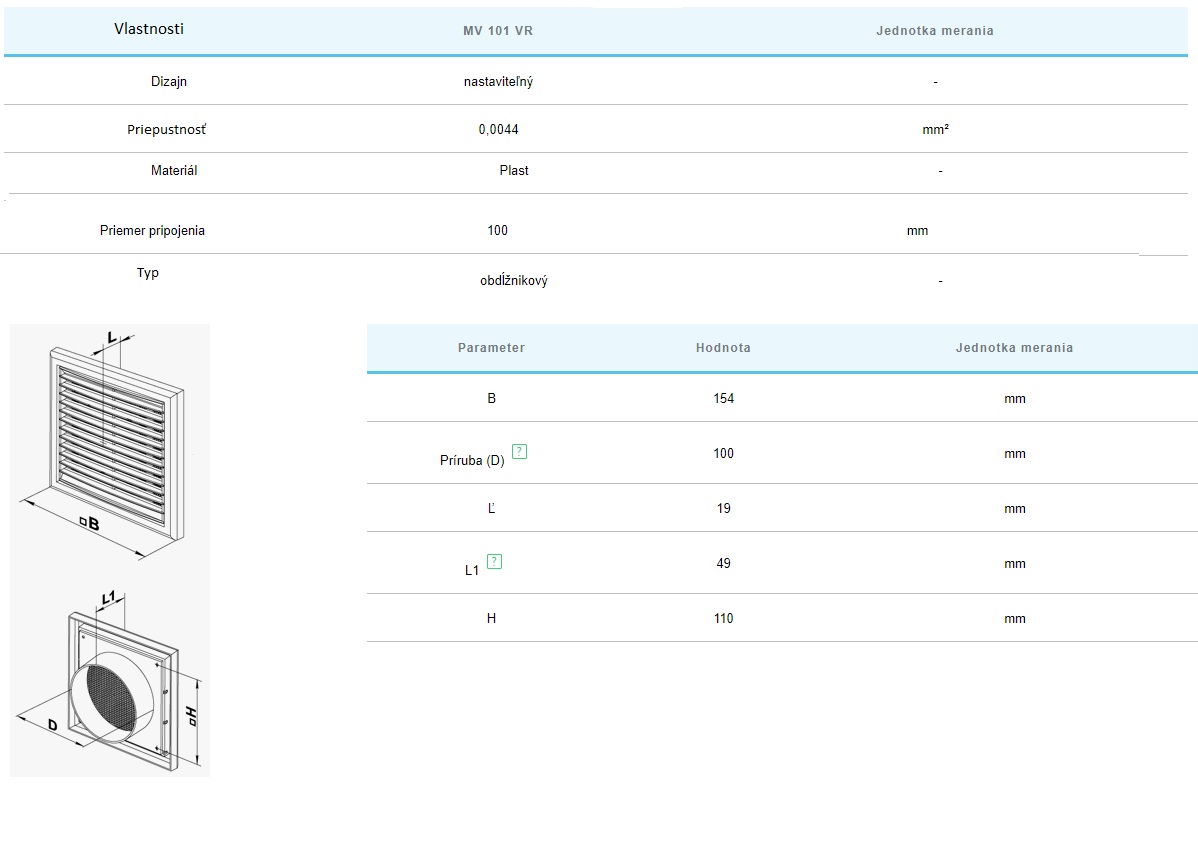 MV100VJ Gravitačná mriežka s prírubou 100mm pre vetracie systémy
