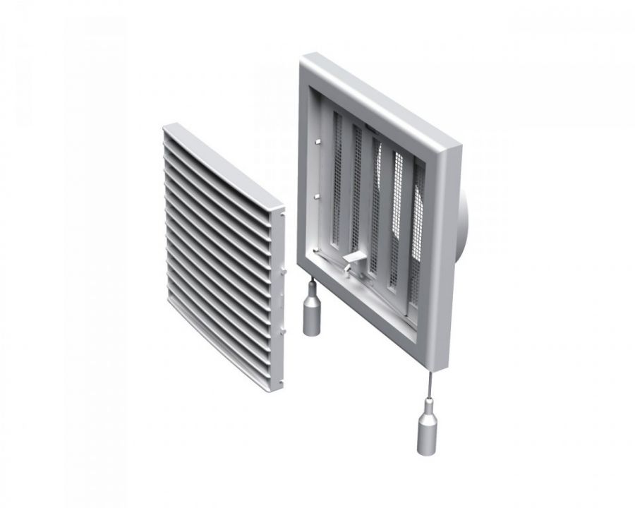 Plastové vetracie mriežky so zatváraním, krycia plocha 154×154/100mm, sú ideálne pre interiérové použitie. Majú rovné lamely, ktoré zabezpečujú správne rozdelenie prúdu vzduchu v priestoroch. Tieto mriežky sú určené na montáž na stenu alebo strop. Sú vyrobené z kvalitného a odolného plastu, pričom vnútorná časť je pripevnená k rámčeku pomocou západiek, čo umožňuje ľahké čistenie bez demontáže. Upevnenie sa realizuje pomocou skrutiek a zatváranie je zabezpečené lankami.