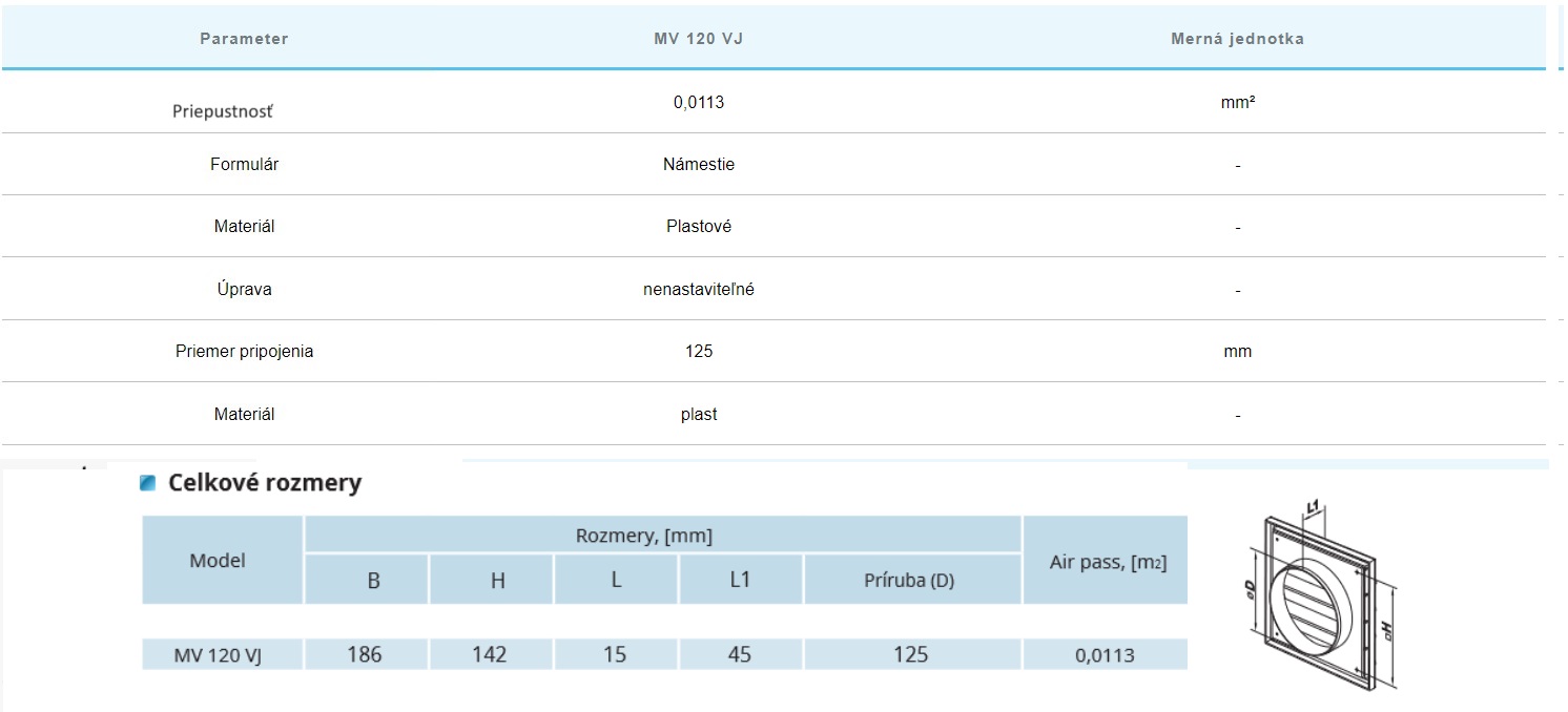 | Mriežky pre Ø mm-exterier-interier-do podhľadu | ⌀125mm-potrubie |
