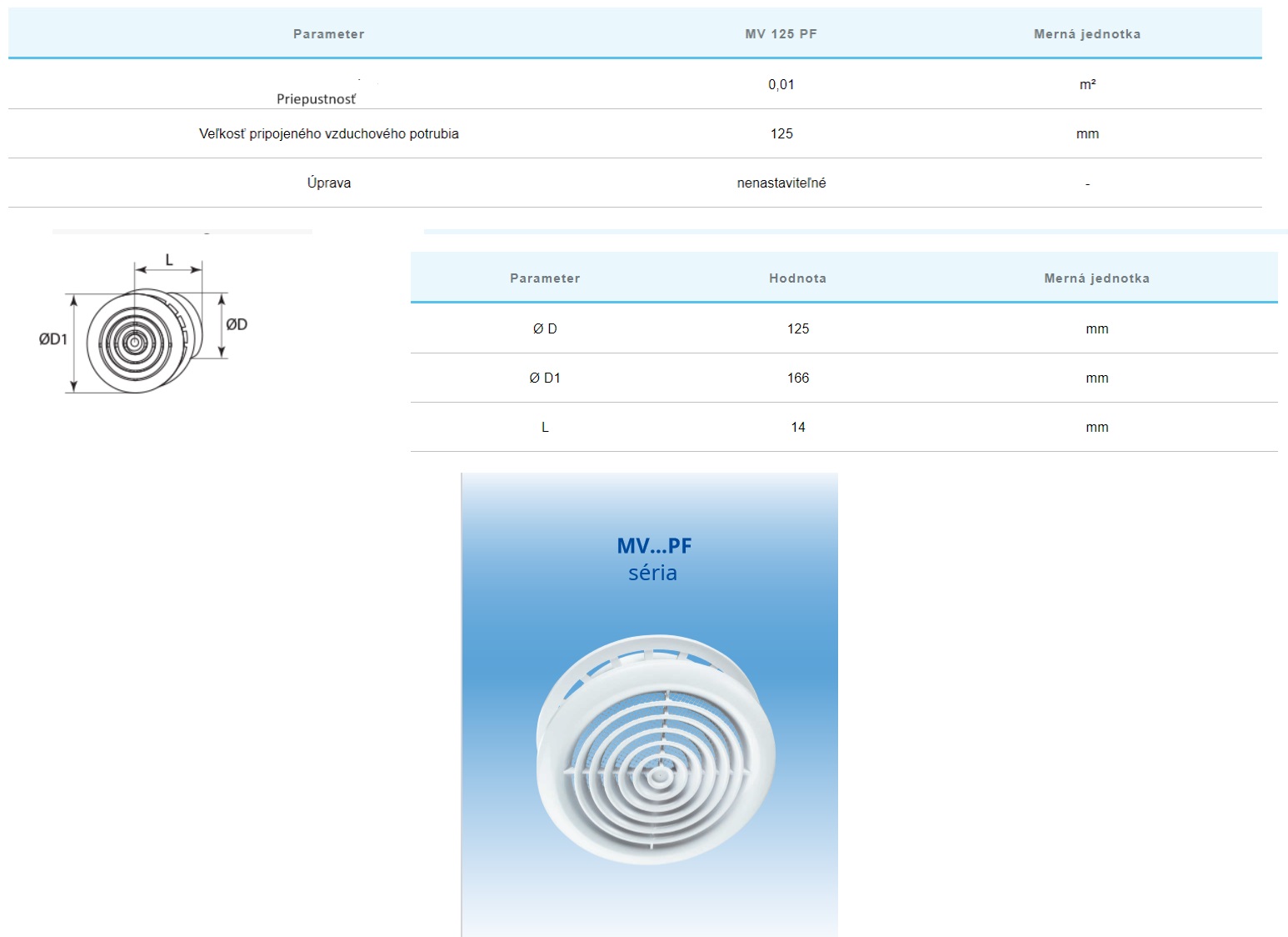 Stropný difúzer MV125PFS slúži na prívod vetrania, klimatizácie a kúrenia. Určený pre montáž na stenu alebo do falošného stropu. Zabezpečuje správnu cirkuláciu vzduchu.