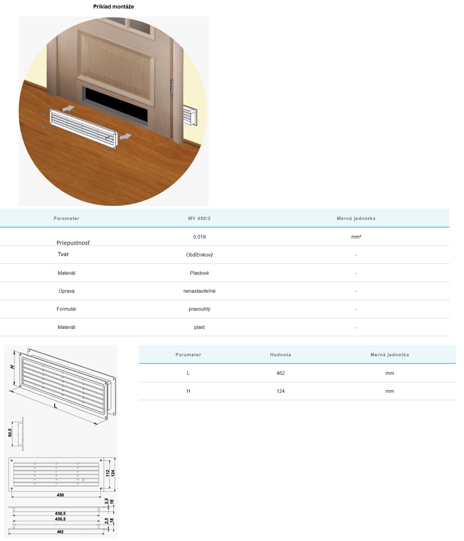 MV450/2 Vetracia plastová mriežka do dverí obojstranná