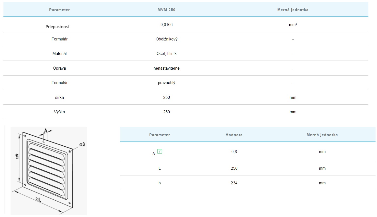 MVM 250ZN pozinkovaná vetracia mriežka s ochrannou sieťkou. Vyrobená z ocele, vhodná na polymérové lakovanie. Skrutkové upevnenie a ochrana proti korózii.