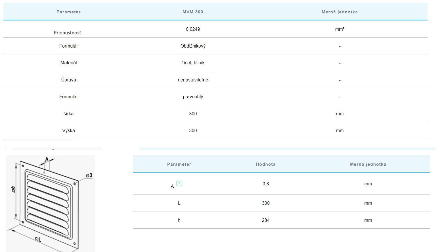 MVM 300ZN pozinkovaná mriežka s ochrannou sieťkou proti hmyzu. Vyrobená z kvalitnej pozinkovanej ocele, vhodná na farebné lakovanie. Skrutkové upevnenie.