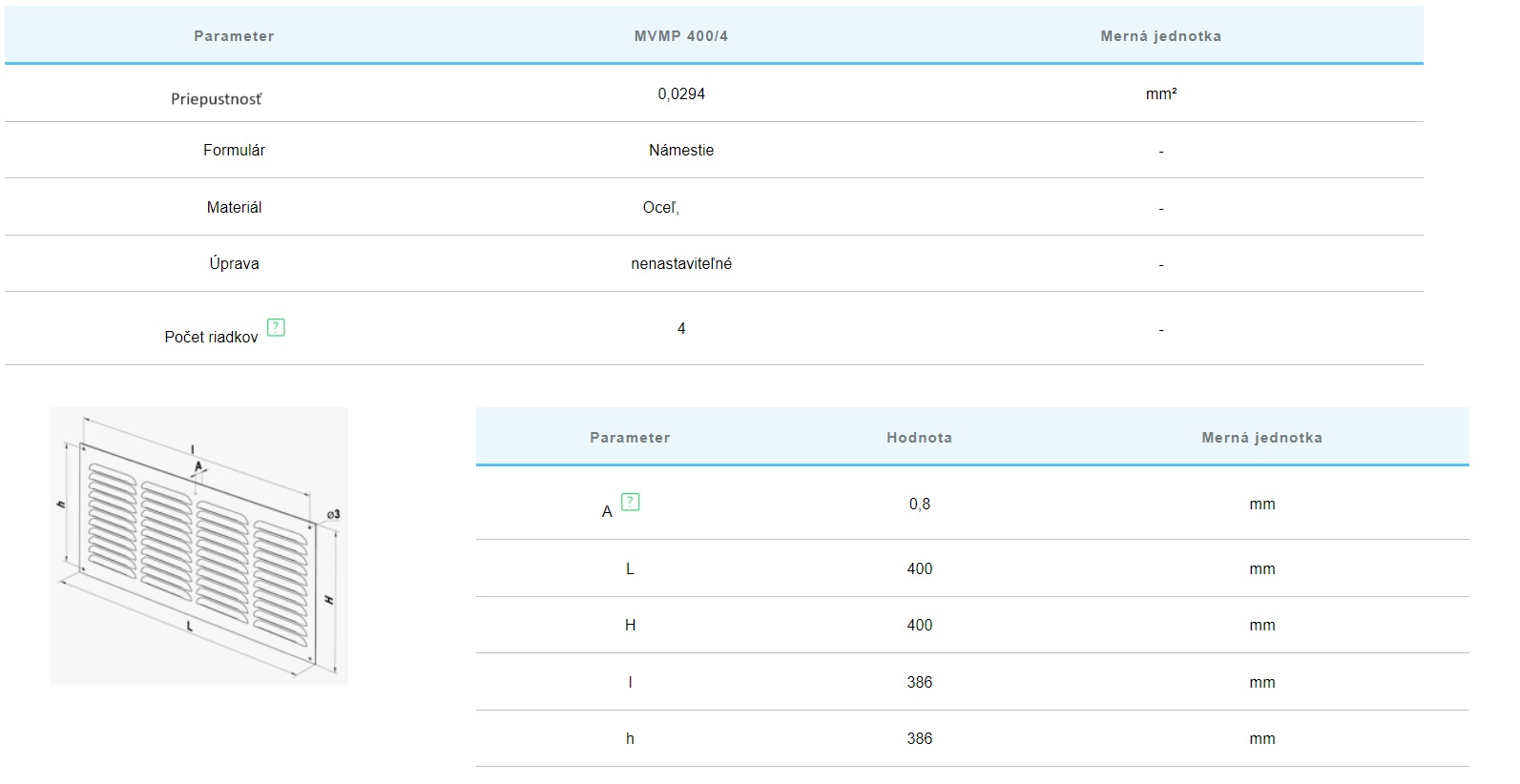 Kovová vetracia mriežka MVM 400/4C Biela. Vyrobená z ocele, pozinkovanej ocele. Skrutkové upevnenie. Kvalitné materiály a zinko-fosfátová úprava zaisťujú celistvosť náteru a poskytujú spoľahlivú ochranu proti korózii. K dispozícii sú úpravy s ochrannou sieťkou proti hmyzu.