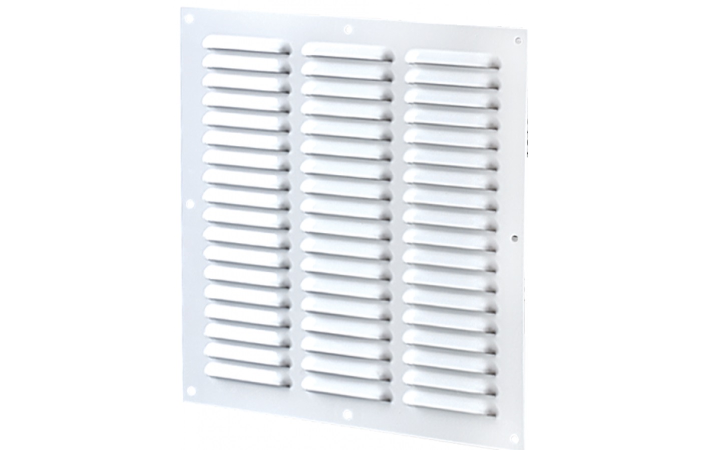 Kovová vetracia mriežka MVM 400/4C Biela. Vyrobená z pozinkovanej ocele. Ochranná sieťka proti hmyzu a skrutkové upevnenie.