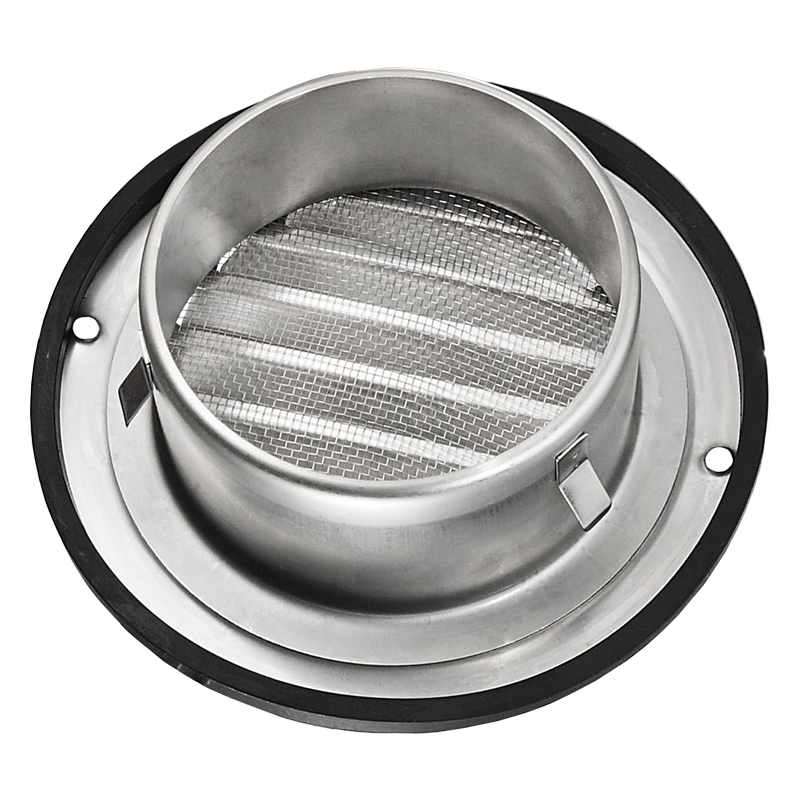 Okrúhla nerezová mriežka s priemerom 119 mm a krycou plochou 184 mm. Vyrobená z brúseného nerezového plechu, táto mriežka je vybavená gumovým tesnením, šróbikmi a hmoždinkou na prichytenie.