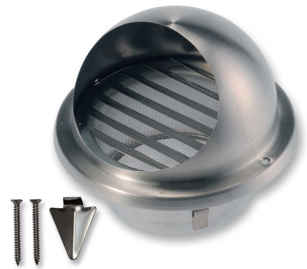 Nerezové vetracie mriežky do potrubia 100mm z nehrdzavejúcej ocele s mriežkou proti hmyzu a mriežkou. Na prívod alebo odvod vzduchu vo ventilačných systémoch. Vyrobené z brúsené nerezovej ocele.