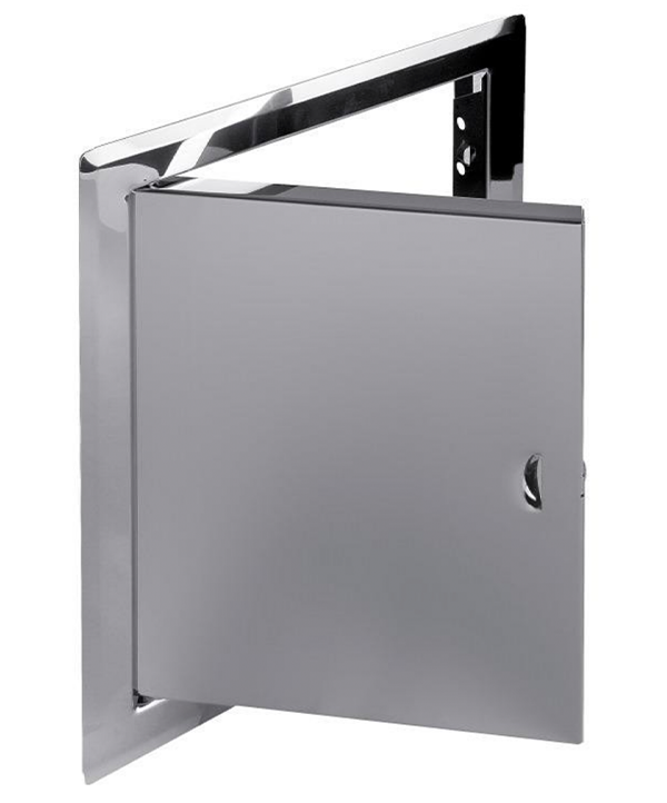 Nerezové revízne dvierka 150×150 mm sú vyrábané lisovaním lesklého nerezového plechu. Tvorí ich vonkajší rám, ktorý pomocou lemu zakrýva nerovnosti montážneho otvoru, a otvárateľné vnútorné dvierka spojené pevným pántom.