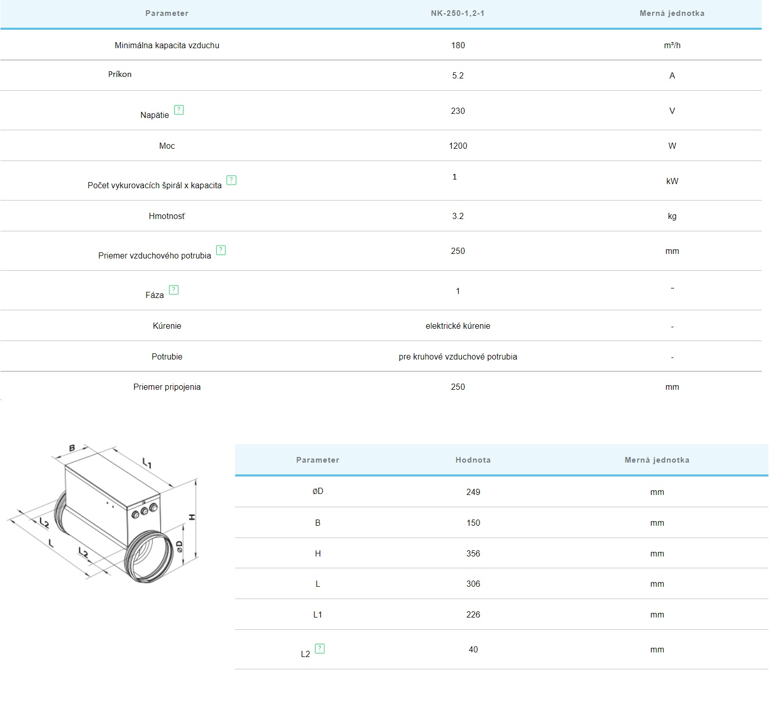 VENTS NK -250-1,2KW Elektrický ohrievač 250mm 1fázový