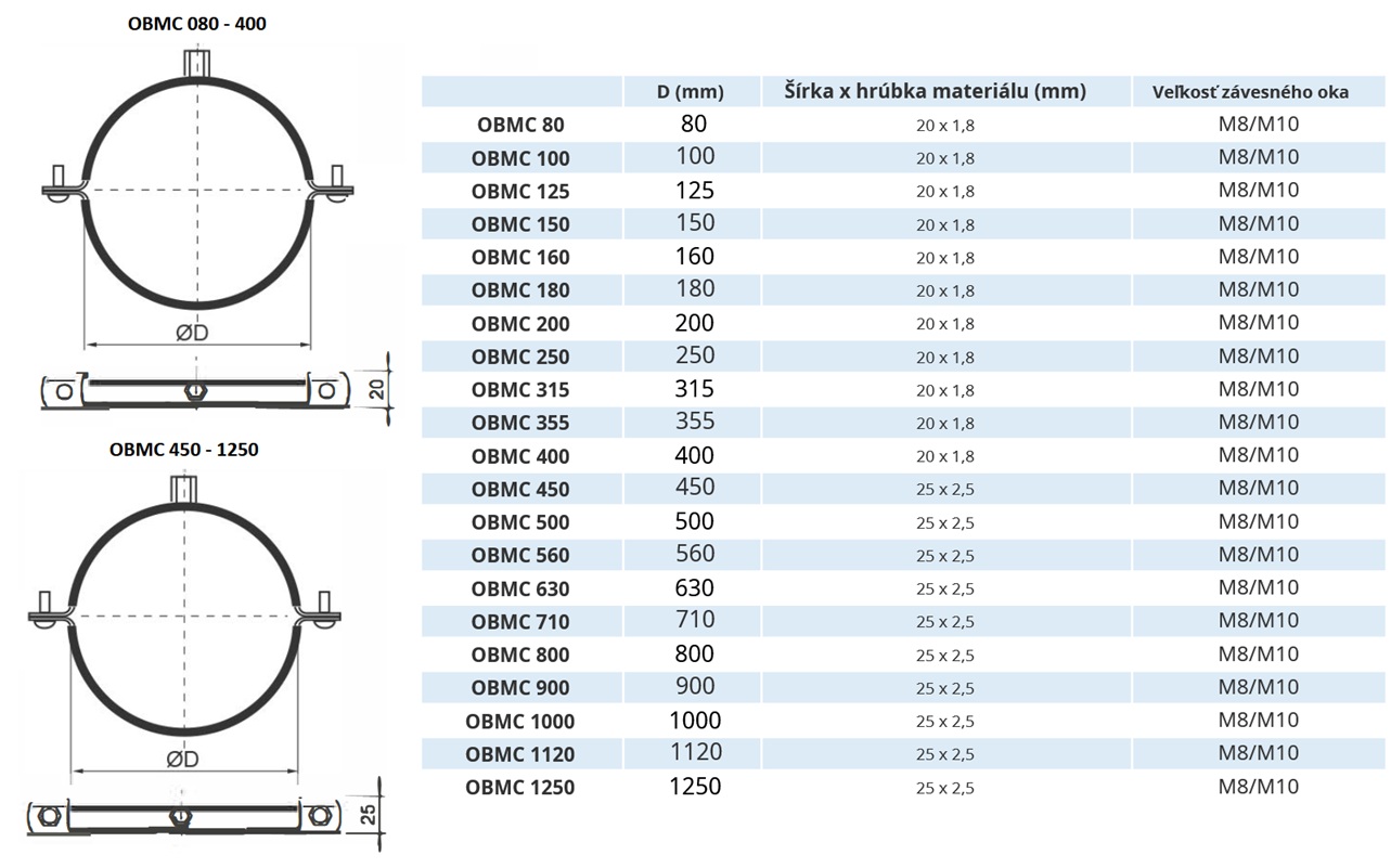 OBMC držiak na potrubie Ø 450mm s gumovým tesnením