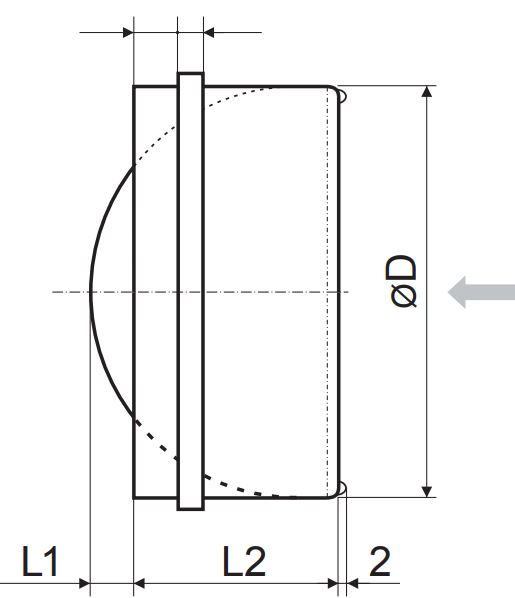 Aby sa zabránilo spätnému toku vzduchu. Pozinkovaný oceľový kruhový spätný ventil so vzduchovým vedením zasunutým do potrubia. Použiteľnosť teploty: do +50 °C. Kryt a lamely sú vyrobené z ocele. Môže byť zasunutý do potrubia.