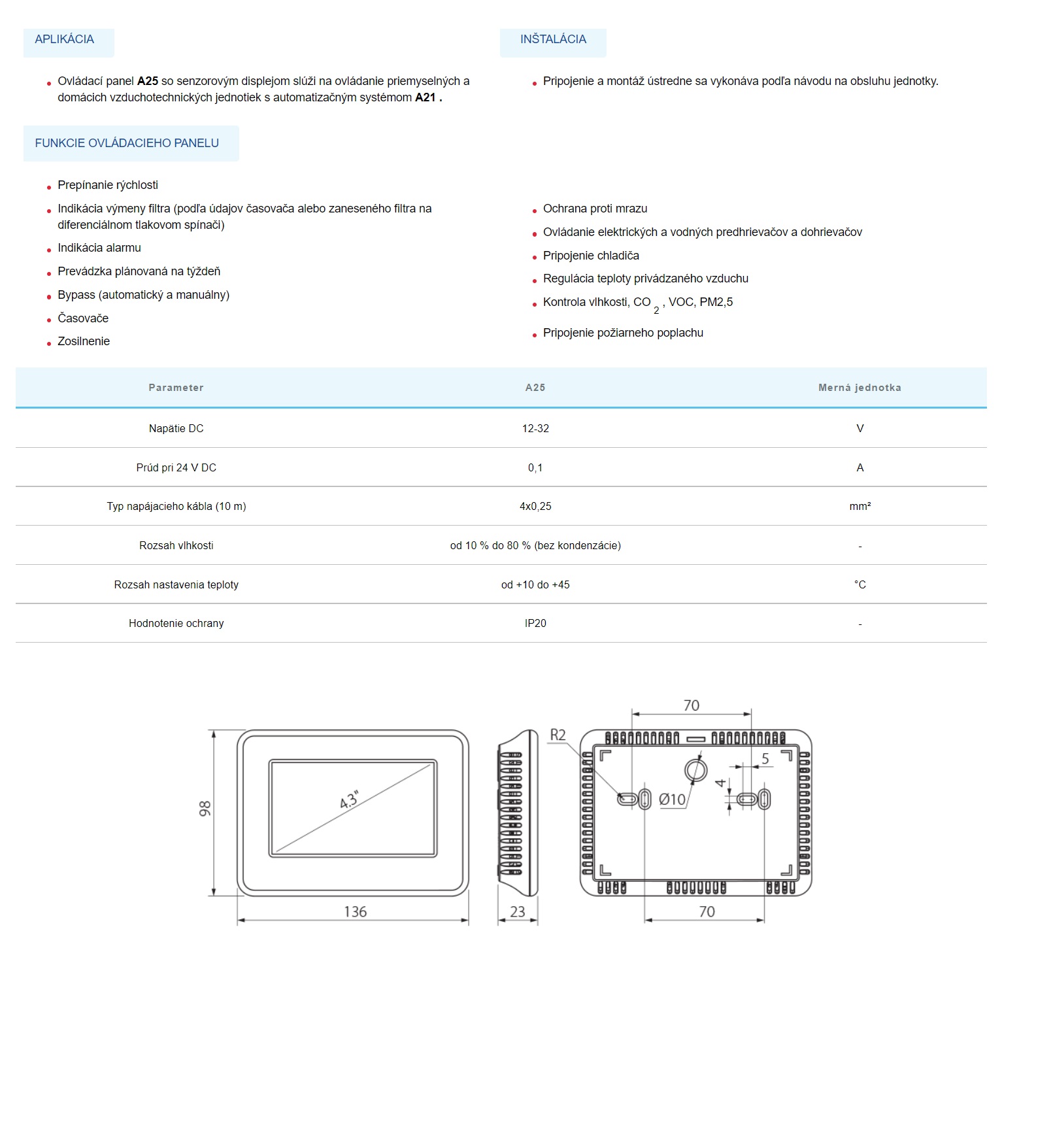 Ovládací panel A25 so senzorovým displejom slúži na ovládanie rekuperačných jednotiek s automatizačným systémom A21.