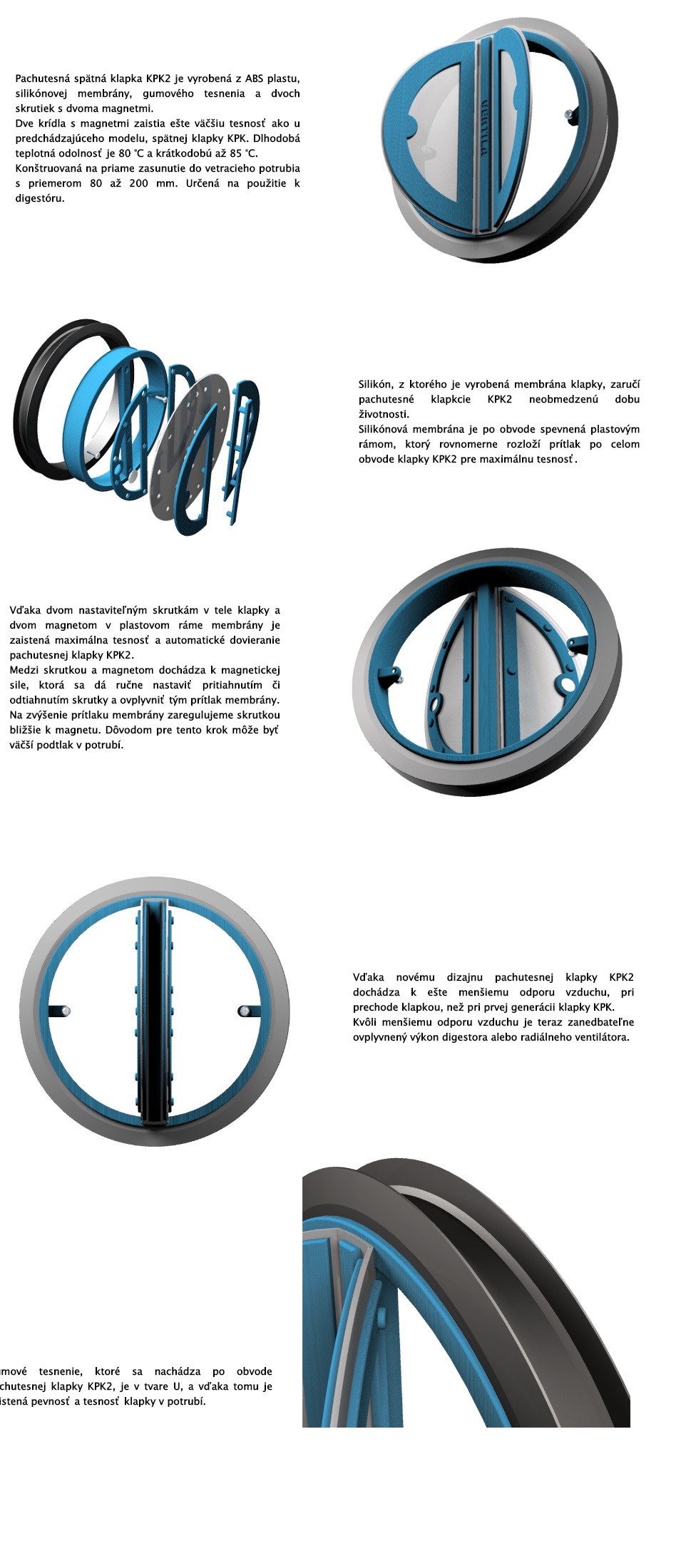 Pachotesná spätná klapka KPK2-125 mm sa vtláča do potrubia. Vhodná pre digestory a radiálne ventilátory.