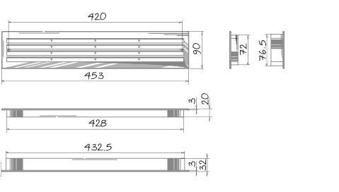 Vetracie plastové mriežky 455x91mm pre dverné krídla kúpeľní a kuchýň. Minimálna hrúbka dverí 30 mm. Antistatický plast, jednoduchá údržba.