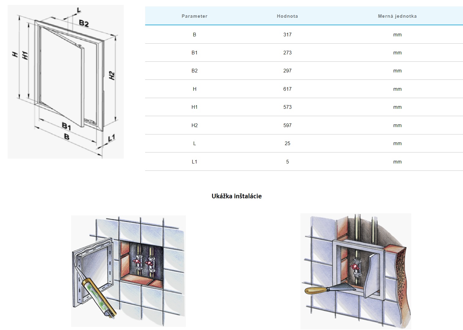 | Revízne dvierka rozmery šírka-výška | 300x600mm |