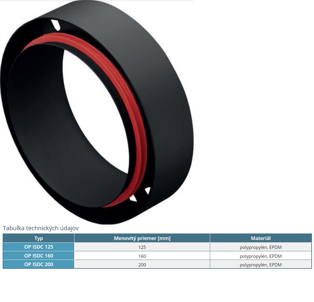 Potrubná spojka OP 200mm s tesnením na pripojenie komponentov izolovaného potrubného systému.