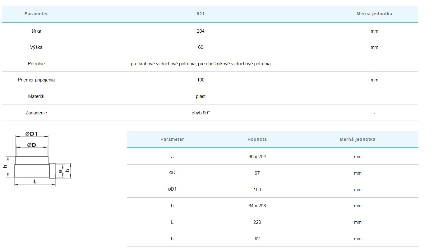 | Hranaté potrubia PLASTOVÉ- □ Výška × Šírka | □ V × Š-60x204mm |