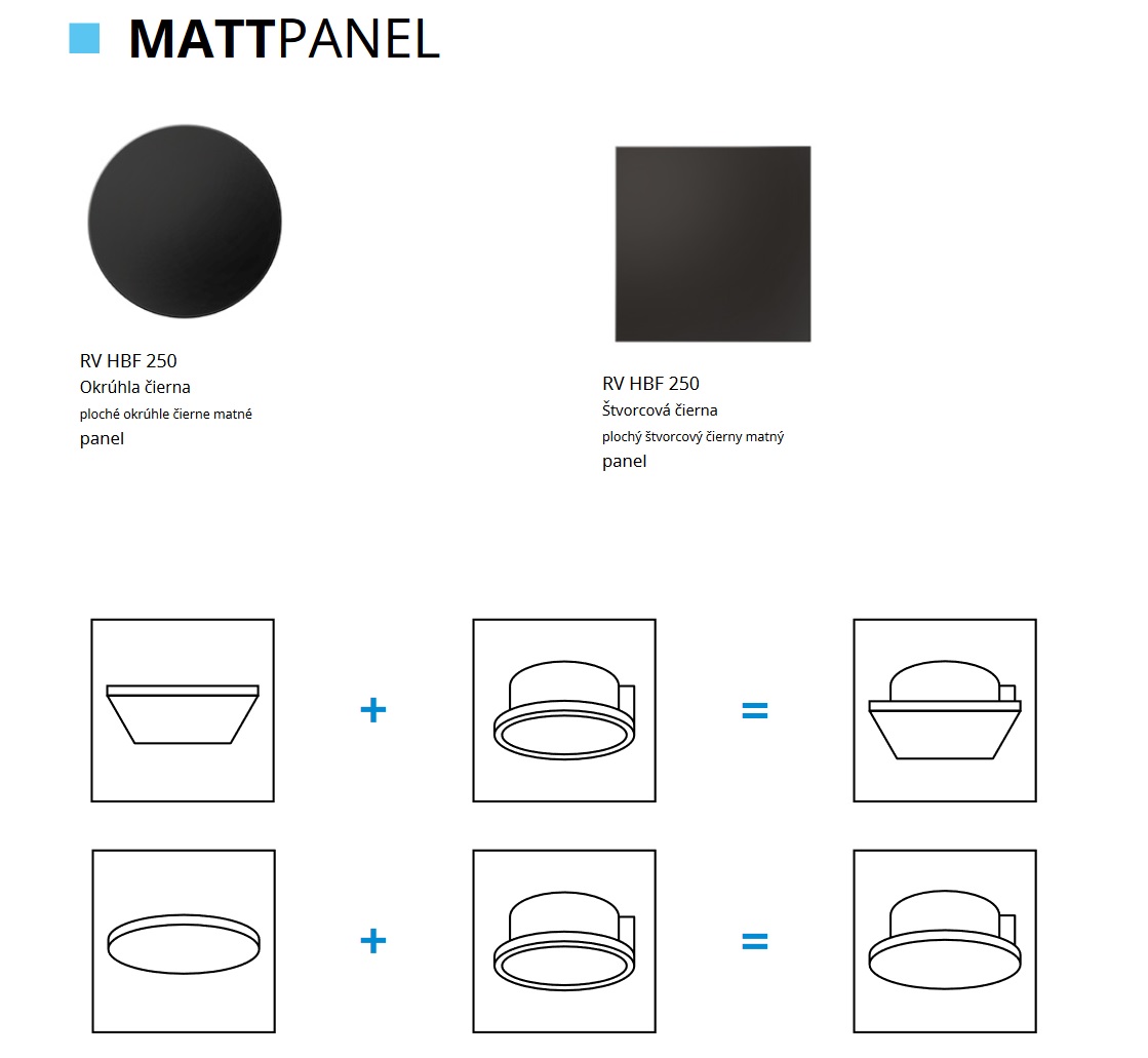 Predný náhradný panel VENTS HBF 250 SQUARE čierny matný pre radiálny ventilátor do stropu
