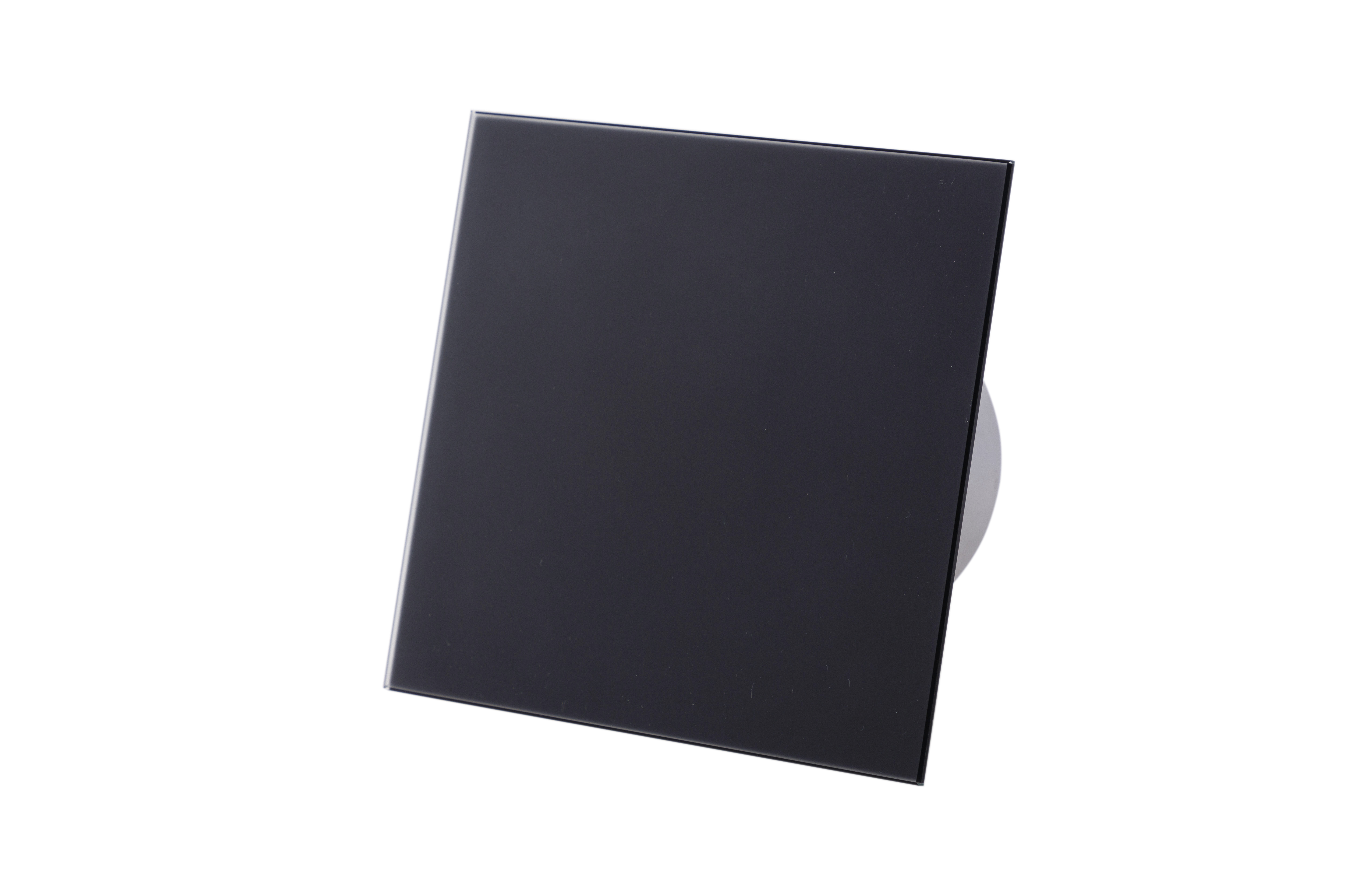 Predný panel Awenta HSF PTGB125M TRAX, matná čierna-sklo, vhodný pre ventilátory do kúpeľne a stropu.
