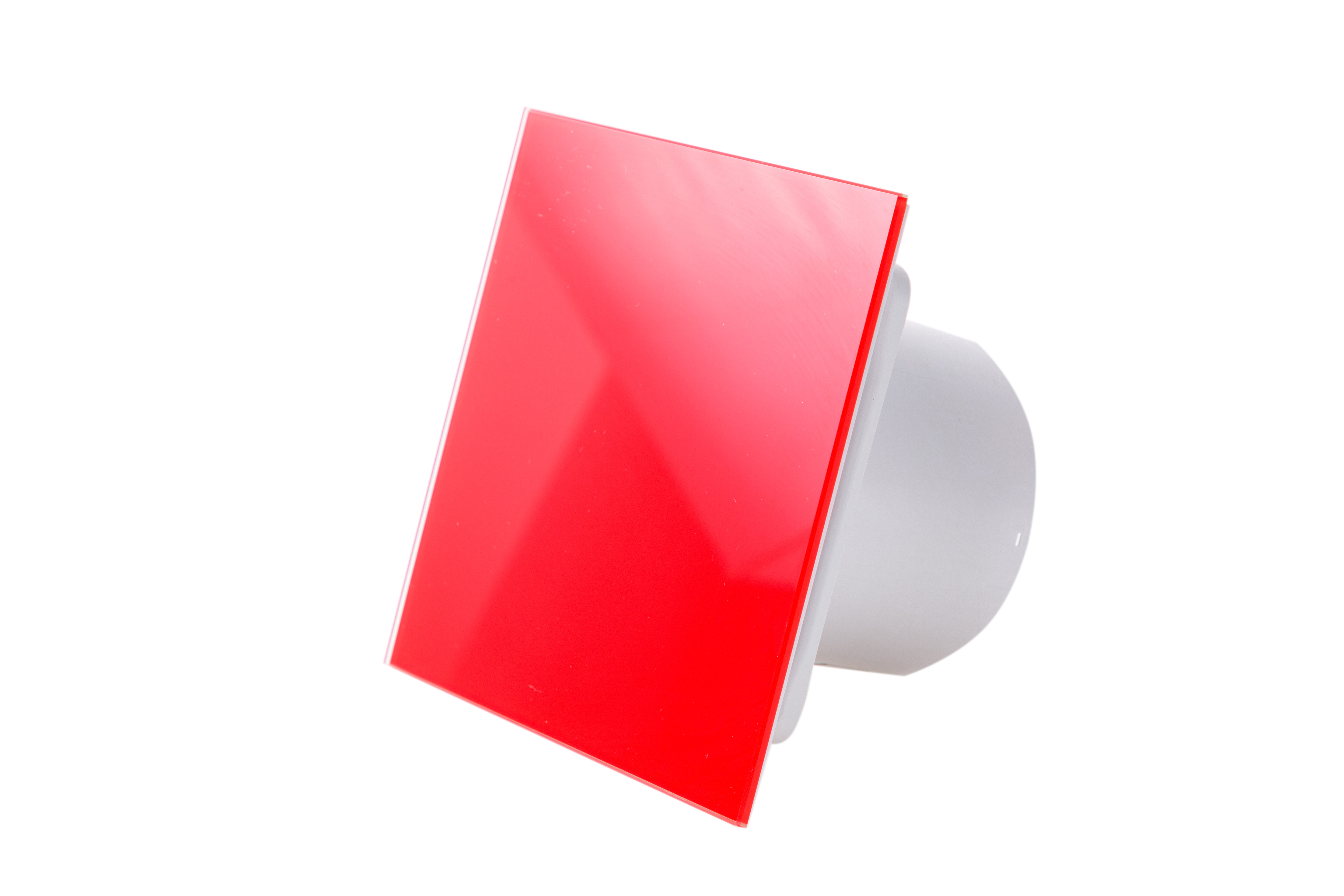 Predný panel Awenta HSF PTGR100P TRAX s lesklým červeným sklom pre ventilátory do kúpeľne, stropu a domové ventilátory.
