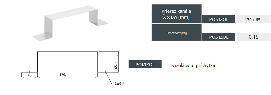 Príchytka na hranaté potrubie 150x50mm s izoláciou
