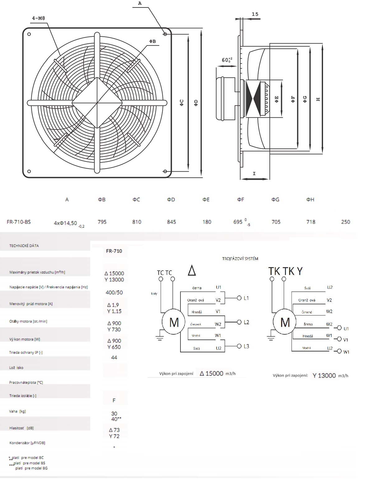 | Nástenné priemyselné ventilátory-⌀D-lopatky | ⌀710mmr-Filter zaradenia medzi výkon od 1500-do 15400m3/h |