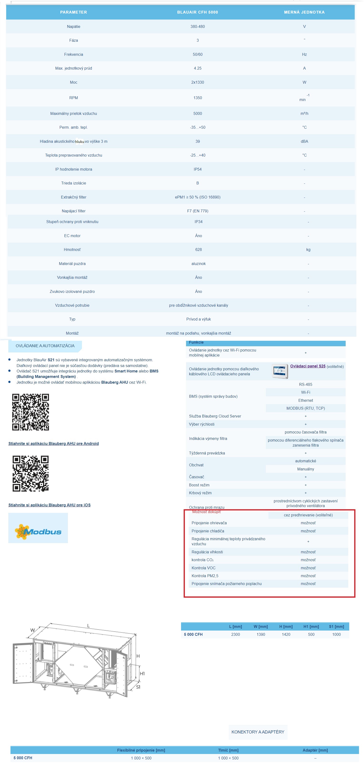 Voliteľná vonkajšia inštalácia s vonkajšou montážnou súpravou. Webové rozhranie, MODBUS, výstupy pre voliteľné DX alebo Hydronic chladenie/kúrenie.