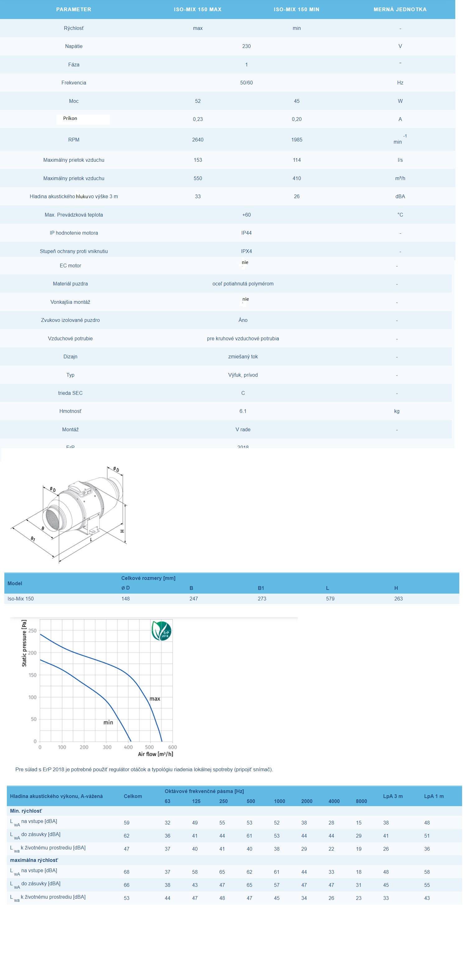 Kód: 8763 Blauberg- Priemyselné ventilátory pre potrubie ⌀ : ⌀125mm-Filter zaradenia medzi výkon od 114-do 505m3/h