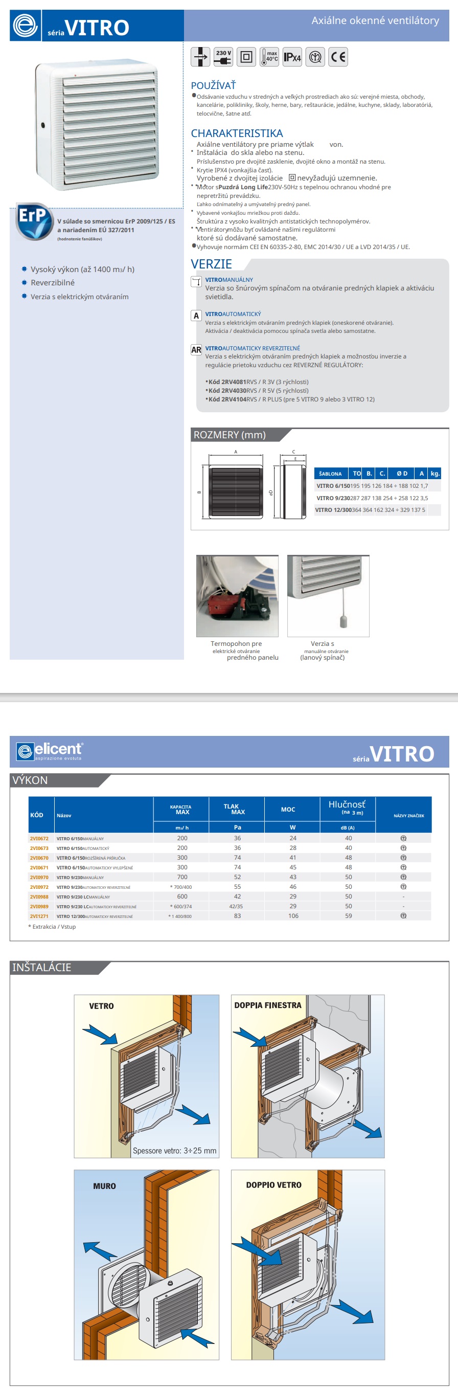 Ventilátor je vhodný na bočnú montáž a ponúka flexibilitu pri inštalácii. VITRO je spoľahlivý produkt od talianskeho výrobcu ELICENT, ktorý sa vyznačuje kvalitou a dlhodobou životnosťou.