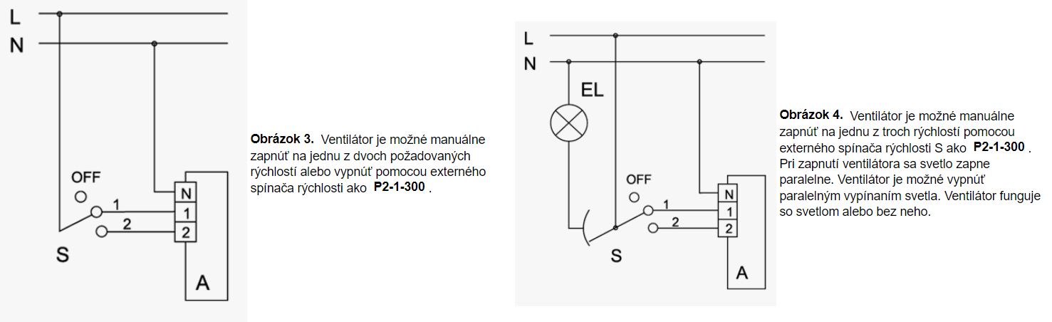Kryt zariadenia je vyrobený z plastu. Regulátor je vhodný pre stupňovité spínanie motora ventilátora (schéma č. 1 a 3) a pre spustenie ventilátora súčasne so zapnutím spínača svetiel (schéma č. 2 a 4).