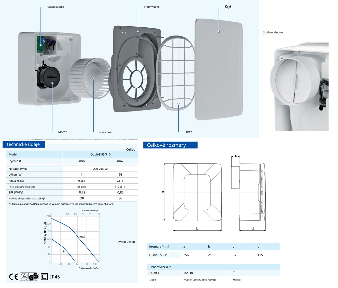 - Vlastnosti-výbava ventilátora : Gulôčkové ložisko-vhodná do stropu aj na stenu, Spätná klapka