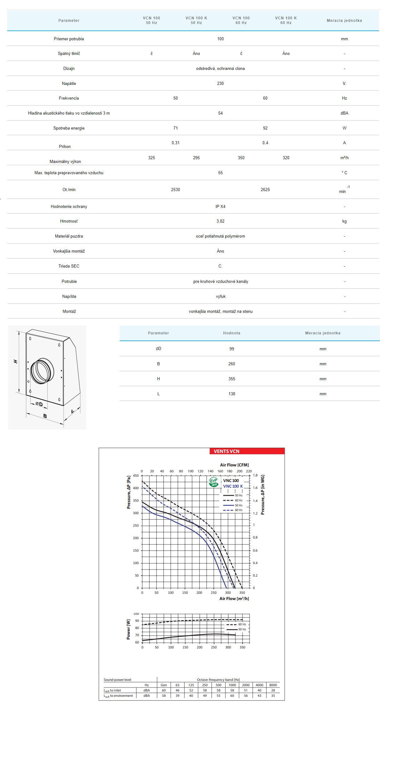 Kód: 2466 VENTS- Priemyselné ventilátory pre potrubie ⌀ : ⌀125mm-Filter zaradenia medzi výkon od 114-do 505m3/h