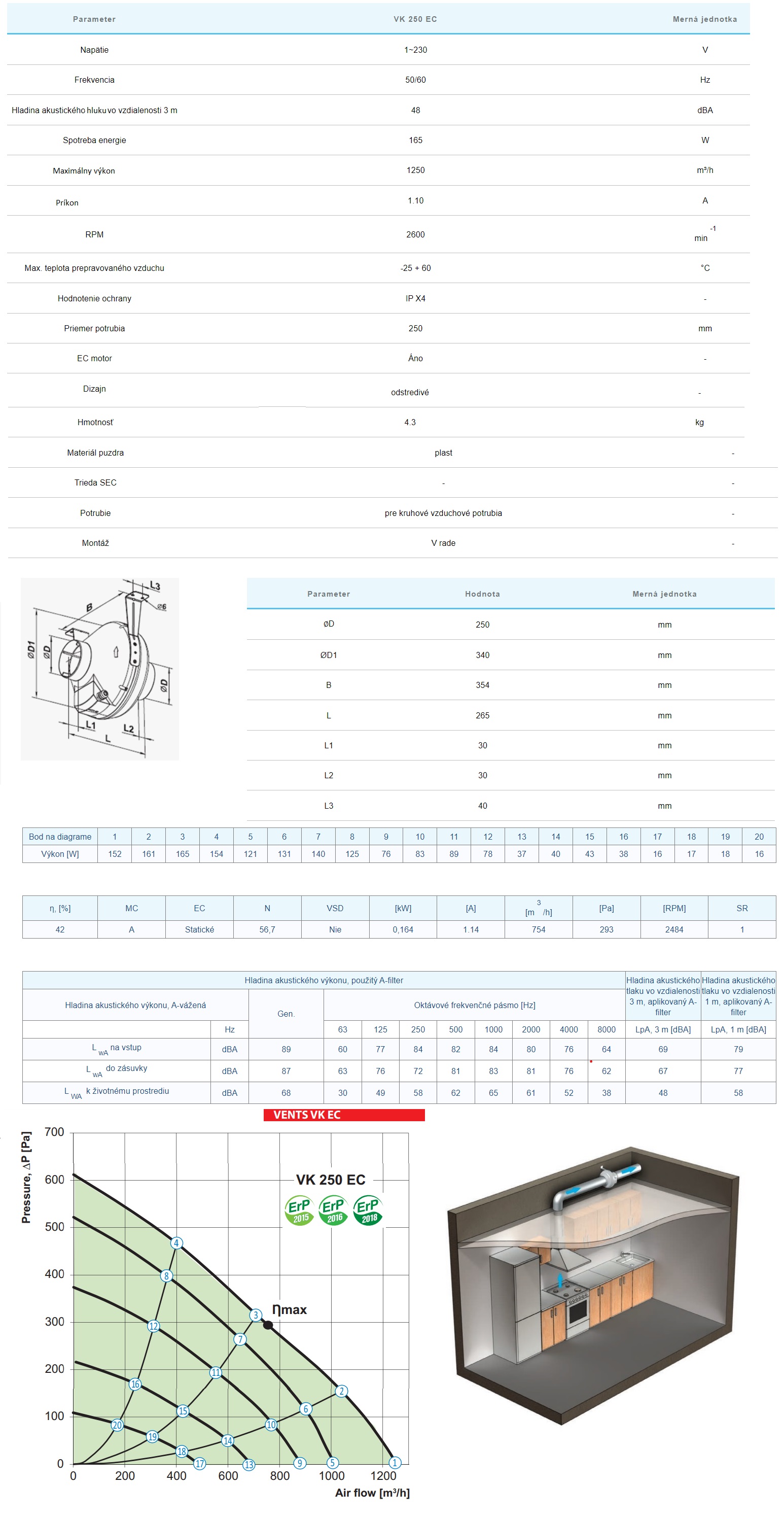 - Priemyselné ventilátory pre potrubie ⌀ : ⌀200mm-Filter zaradenia medzi výkon od 405-do 1900m3/h